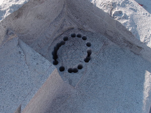 この石には石切り場の作業で空けられた削岩機の穴が上部に通っています。