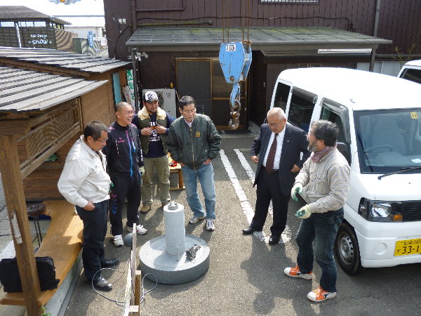 まず一番街駐車場に設置してあったPetreのあかりモニュメントを、18日オープン予定の「たかなべ町屋本店」へ移設しました。