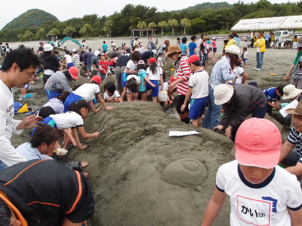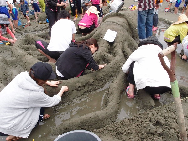 どのチームも大変仲良く、熱心に自然の中での造形作業を体ごと楽しんでいました。