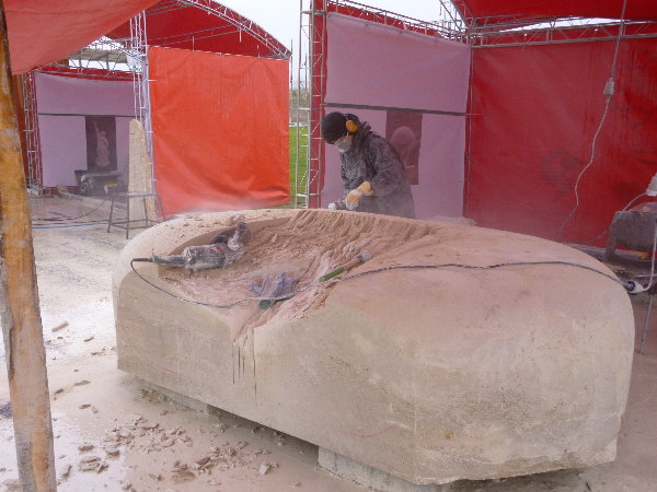 私は体を休めるためにホテルへ戻りましたが、ほかの海外作家3人は時間が足らないと言うことで、時折りテントに溜まった雨水の直撃を受けながら夕刻まで制作したようです。