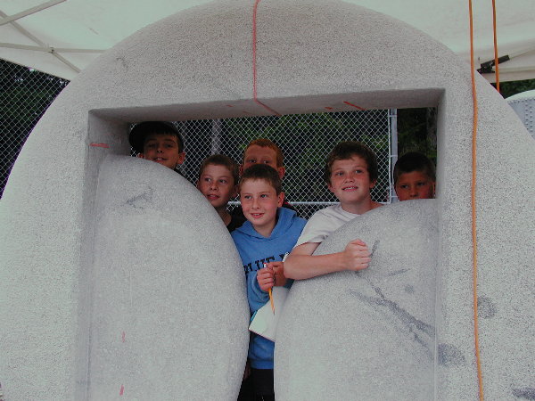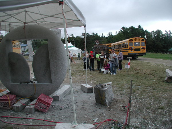 ☆学校が新年度が始まりましたので、午前にハンコック(ジョンの作品設置場所)、East Port(ジムの作品設置場所)、そしてBlue Hillからそれぞれスクールバスに乗った子どもたちがやってきました。