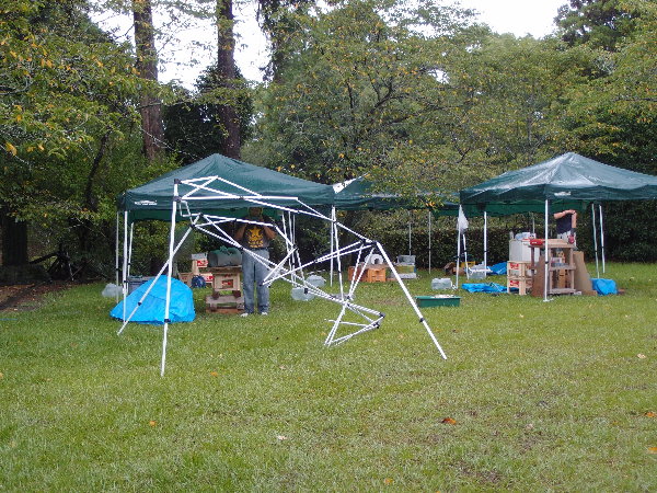 朝のうちは雷雨で、とても寒い作業の開始となりました。