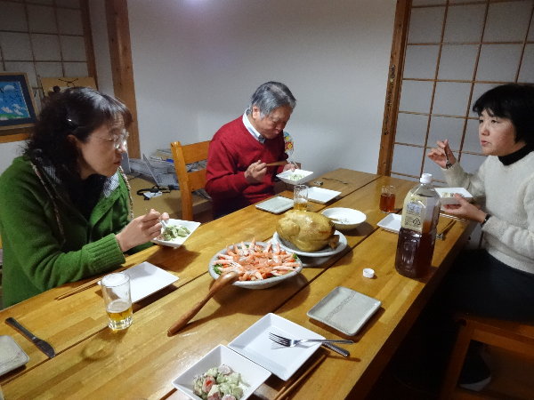 ☆夜はお互い夫婦2人だけで寂しいクリスマスイヴを迎えるようになったので、高鍋町美術館長の安井君夫妻を招待して、我家で楽しいひと時を過ごしました。