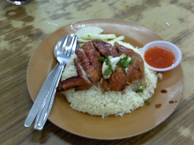 それでクリニックのある商店街へ行くと、一番最初の店が大繁盛でしたので、入って、チキンライスを注文しました。