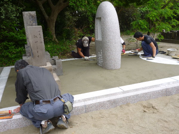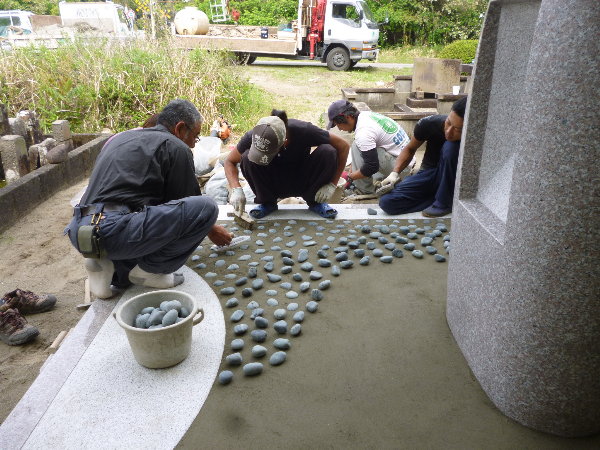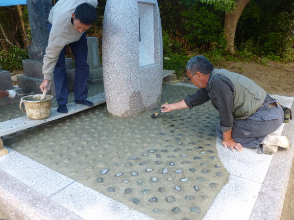 ☆今日は設置した墓碑の敷地内の床の洗い出し作業を行いました。