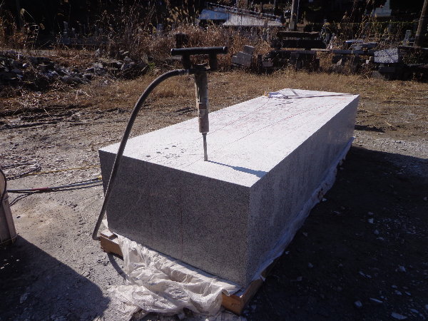 上部の角をセリ矢で落とすためにルートハンマーでビットを入れておきます。
