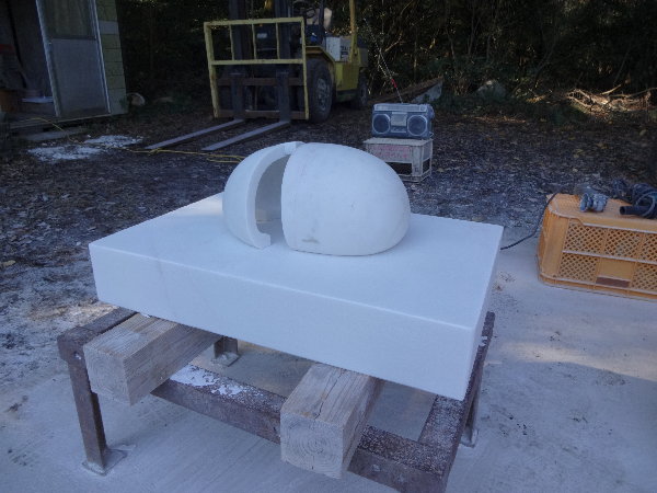☆台座の大まかな面出し作業が終わったので、あかり本体との位置合わせをしました。