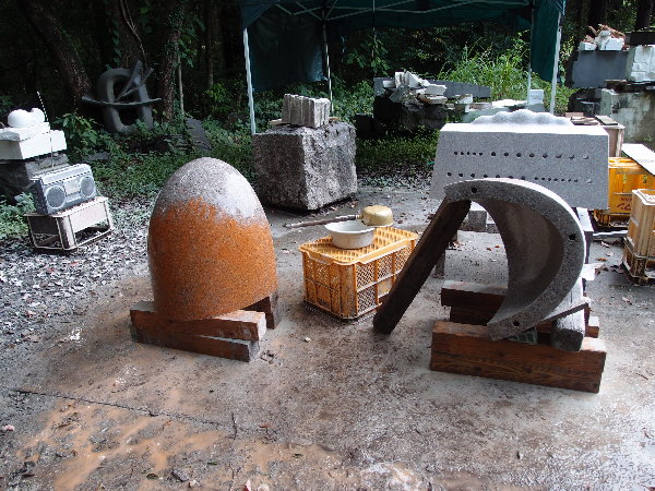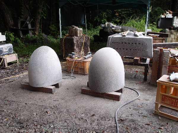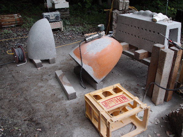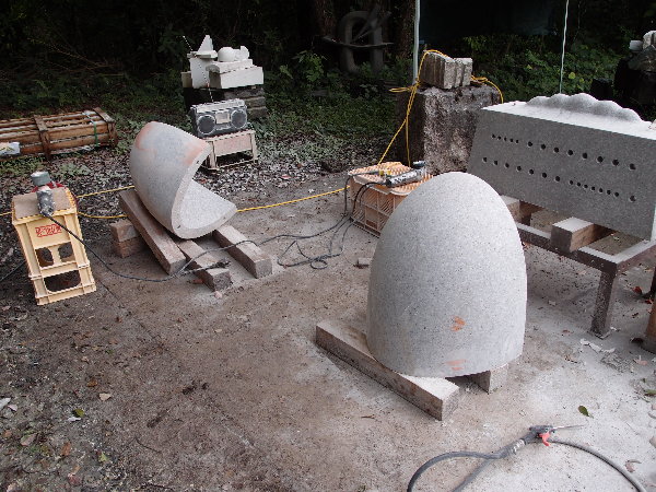 昨日はあかりモニュメント本体の、上部フォルムの成形作業を進めました。