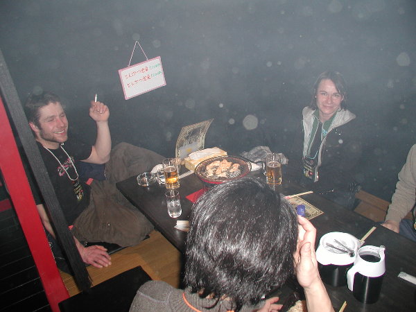 ☆2次会をホテルの前に出来ていた七輪焼きのホルモン屋でスイスチームと一緒にしました。
