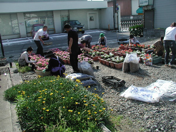 ☆今朝は中町名店会主催で恒例の花の植栽とポケットパーク清掃作業を行いました。公民館の方々にも参加いただき、また、まちなか活性化協議会事務局員と隣の六日町公民館からの応援もありました。