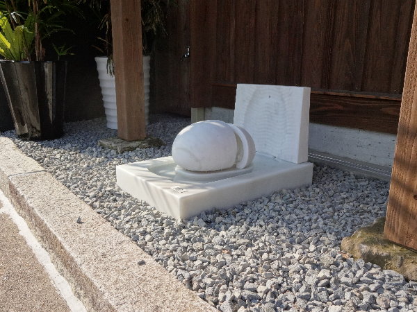 黒御影石の作品はとりあえず我家の入り口に置くことにしました。