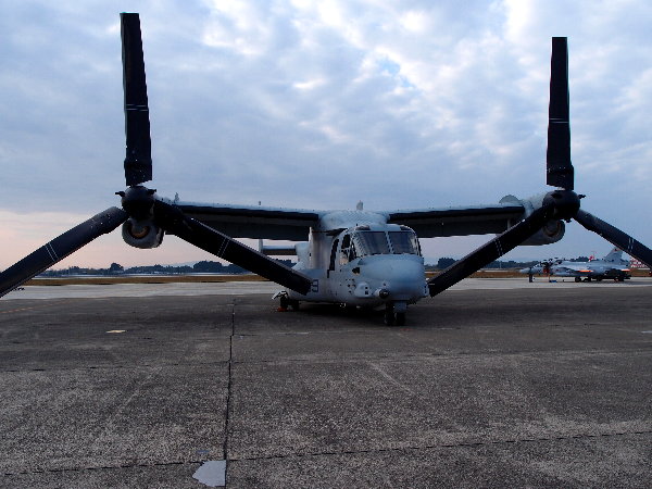 その目当てとは・・・、今最も関心を関心を集めているオスプレイです。