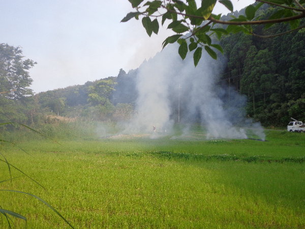 これから田植えをするのに雑草を焼いたのでしょうが、田んぼで野焼きをするのははじめて見ました。