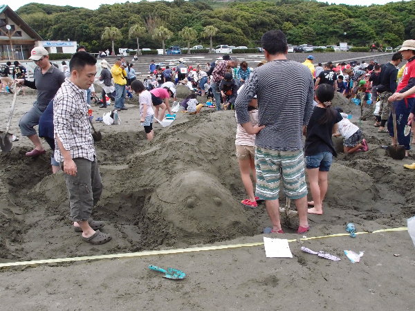 あいにくの曇天でしたが、幸い雨にはならず、砂も乾燥せず、ちょうど好いコンディションとなりました。