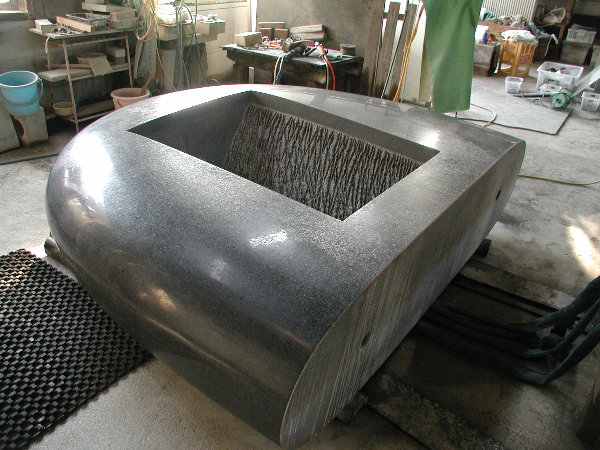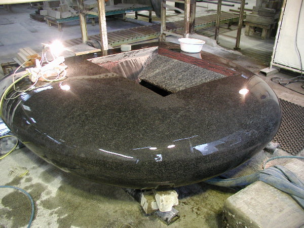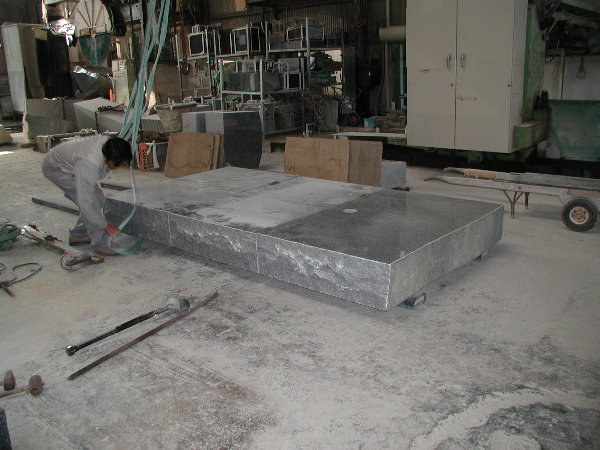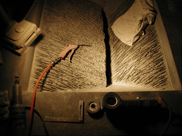 搬入が大変だったのと、私のエアー工具を石材店の使用環境に合わせての部品交換などに時間を取られ、研磨作業にかかったのはもう午後半ばでした。