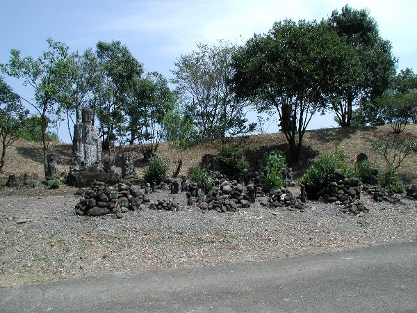 石像の背後にあるなだらかな低い小山はすべて古墳です。