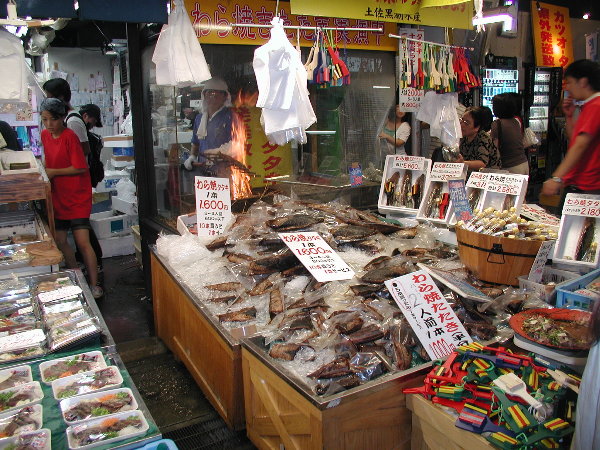 この”ひろめ市場”は、台湾・台北の屋台村のような作りで、色んなものが売っていてとても楽しい空間です。この”ひろめ市場”だけでも高知市へ来た甲斐が充分にあります。