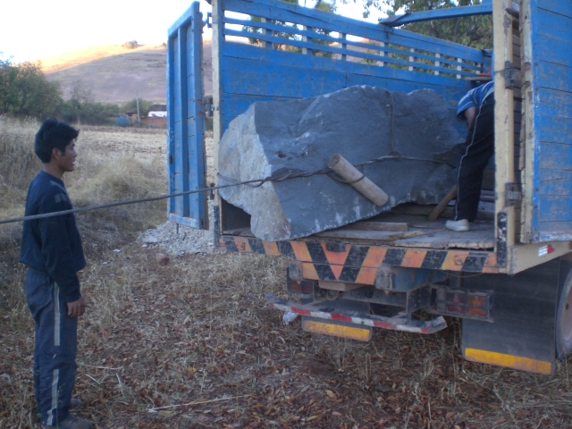 来年の個展に向けて2㍍前後の作品を7点展示したいと考え、石材を購入しているのだが、今日はそのうちの5個目と7個めの石が到着した。