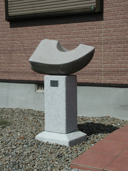 この中町彫刻のあるまちづくり事業は中町名店会の事業です。プレートは名店会の経費で作られています。台座は私のボランティアです。ですからこうして、名店会会長と敷地提供者と私が一緒になって彫刻を設置するというのは、まったく理想的な事業展開になります。