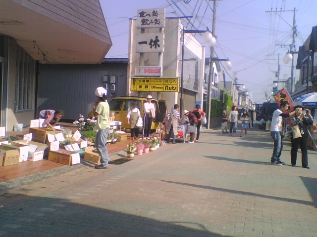 回を重ねるごとに出店数も買い物客も減り、トークダウン気味の朝市でしたが、今日はとてもよい天気で多くの人出で久しぶりに賑わいました。