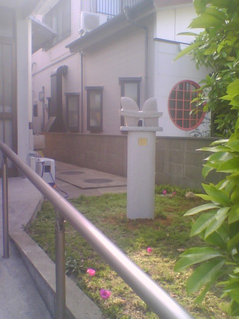玄関へ向かっていて、敷地内においてある石塔等に混じって、白い陶のオブジェが置いてあるのに気付きました。