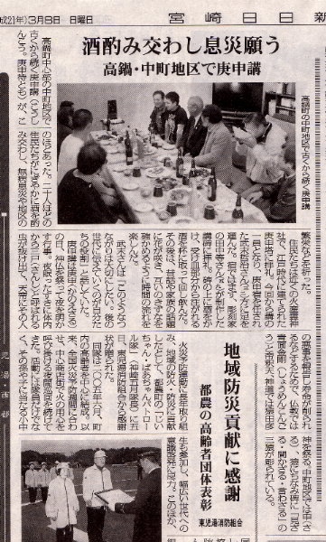 今日の朝刊・児湯版に載っていたのは、先日の中町公民館の庚申講の記事でした。