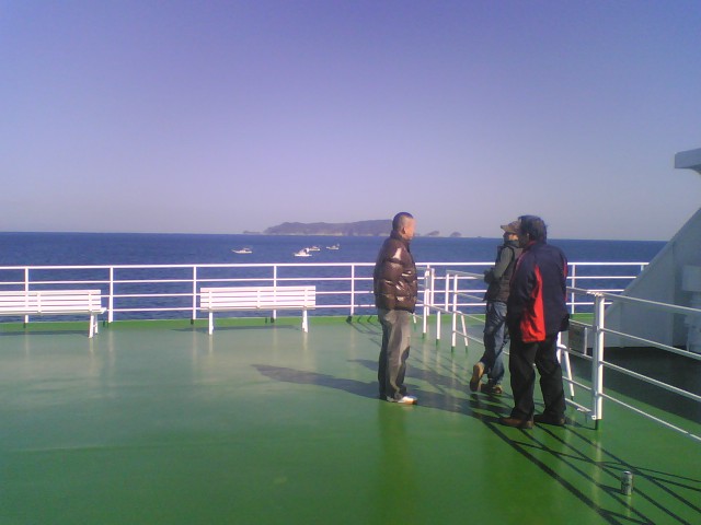 フェリーの上も風は冷たいですがビールの酔いにはとても気持ちの良い青空・海原でした。