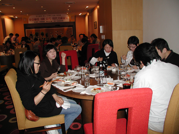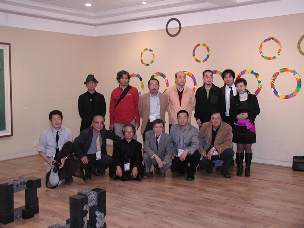 右から3番目の方が作家です。中国の作家たちがとてもびっくりして一緒に写真を撮ってもらっていたところへ便乗しました。
