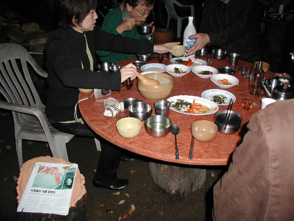 清州へ戻り、昼食は陣教授(下右)のアトリエの隣のレストランでした。