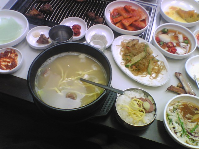 夕食はお決まりのカルビー。韓国の人たちは本当によく食べます。