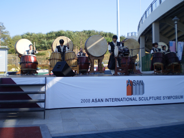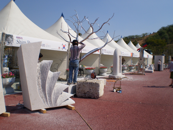 韓国は地震が無いから設置は簡単なものです。基礎の上に置くだけです。転倒の心配のある作品以外は基礎と作品の接着はありません。