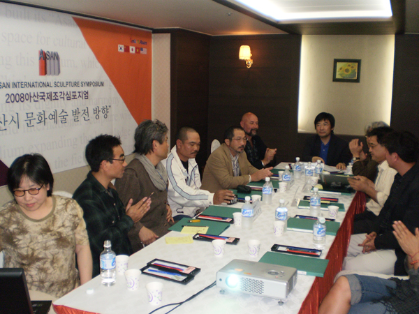 ☆午後6時からホテルの会議室でコミッショナーのSeongrok, Seo氏のコーディネートによるシンポジウムディスカションが行われました。各作家がプロジェクターで写し出された各自の作品の解説をしていくというものでした。