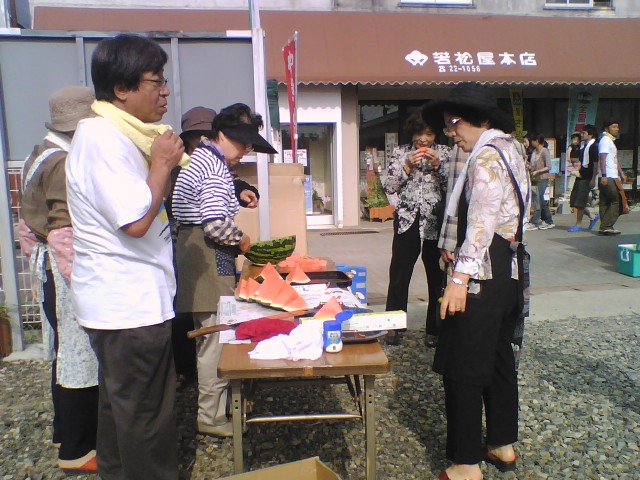 お客も昨夜の祭りの疲れや真夏の朝の陽射しにうんざりしてかまばらな人の出でした。
