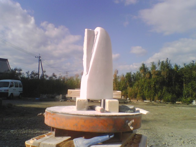 ☆今日は石材店の霊標の仕事と、枕崎の作品の取り付け加工作業、そして明後日までにデーターを提出しなければならない”美術展2008[ima]長崎”の作品の寸法だしのための荒落とし作業でした。