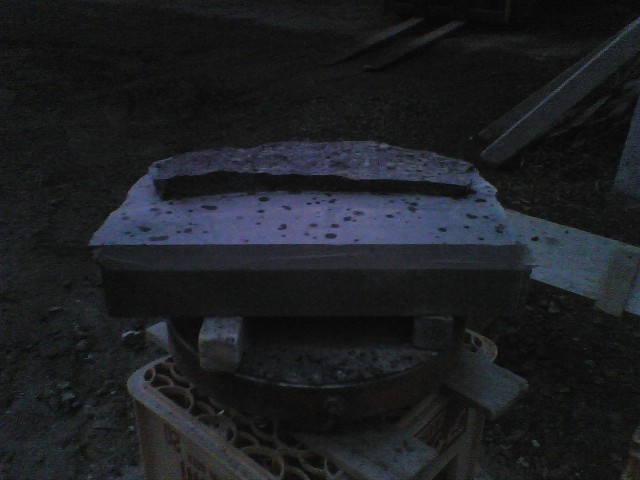 枕崎に設置する台座の底部に心棒の穴を開けたのですが、ルートハンマーで開けた穴が手持ちの心棒には小さかったのでハンマードリルで広げようとしました。
