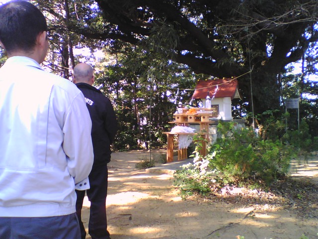 社の後ろにある大きな木は椎の木です。私たちは少年時代にこのあたりに椎の実を拾いに上がってきたものです。