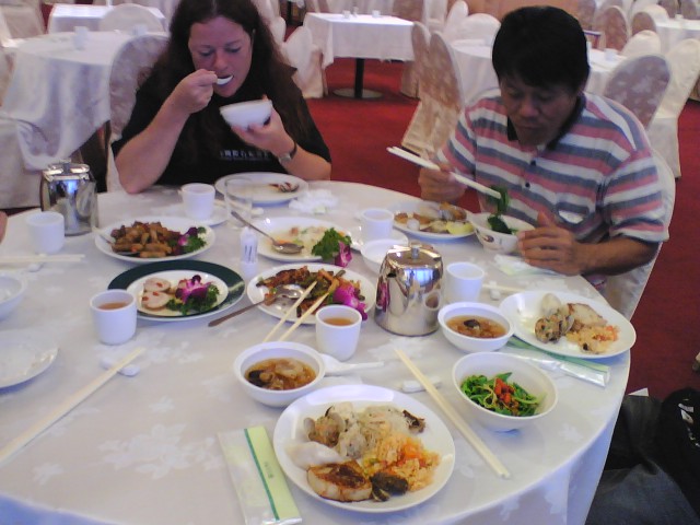 次から次に運ばれてくる料理の数々。台湾の一般料理のようなどぎつい香味材料を使わず落ち着いた味付けでした。