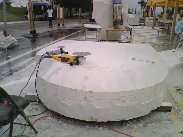 私は午前中の作業は見送って、張さんの車で林さんと3人で街へ出て、金物店を回って必要な道具を物色して購入しました。事務局で道具屋さんを通じて買うと、同じものが市内の一般の店の6,7倍もします。どうやらシンポジウムを搾取の場と考えている手合いがいるようです。夕食が弁当であったり、石が非常に質の悪いものだったり・・・・作家へまわすべきものを自分の懐へ取り込んでいる輩がいることが次第に明らかになってきました。