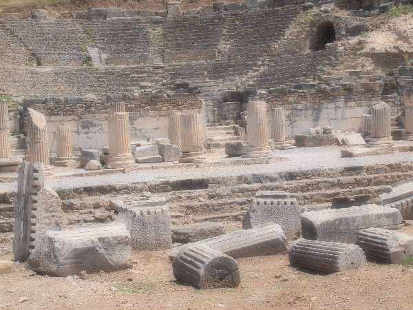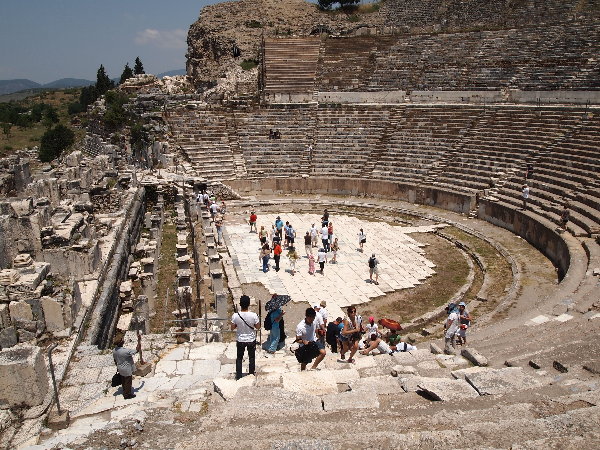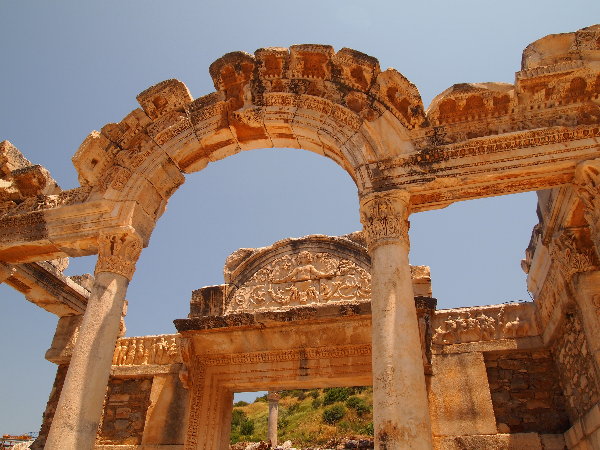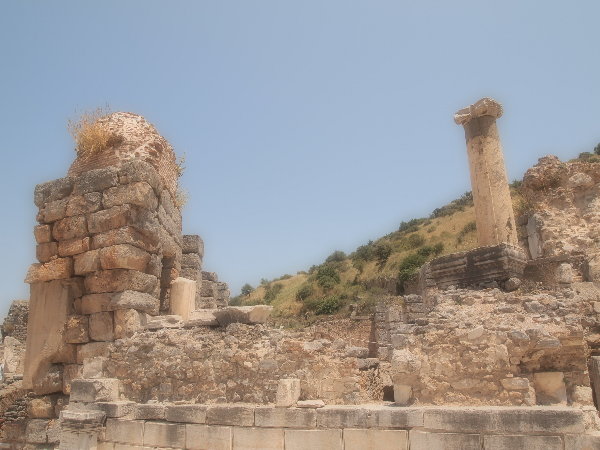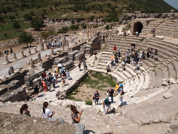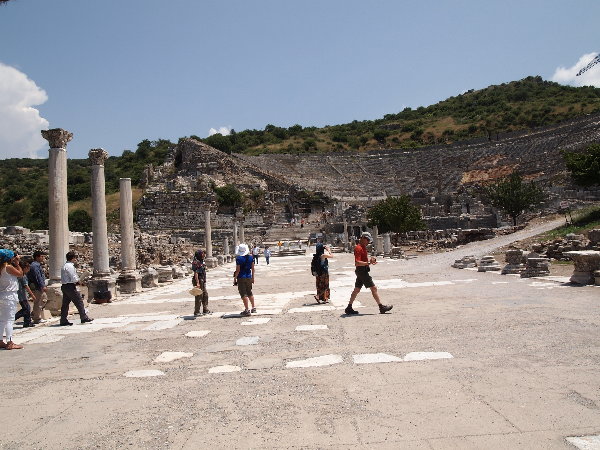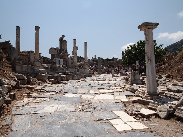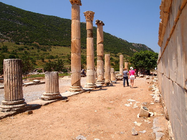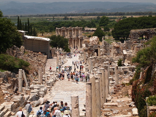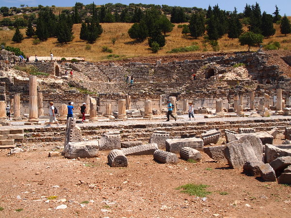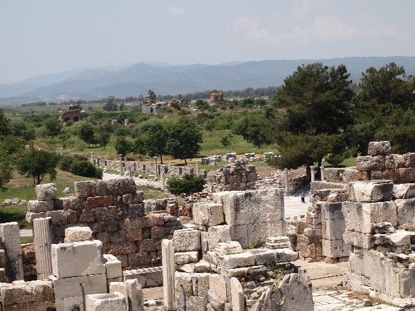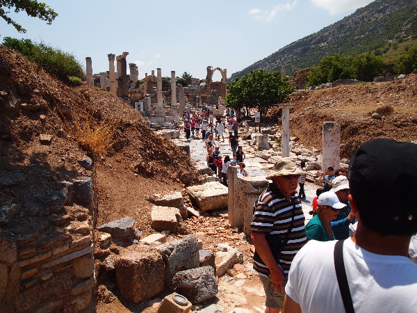 向こうにエーゲ海が広がり、天然の良港を得てエフェソスは商業都市として大変な繁栄をしましたが、次第に川州の堆積で海岸が遠のき、マラリアが蔓延し始めて衰退して行ったそうです。