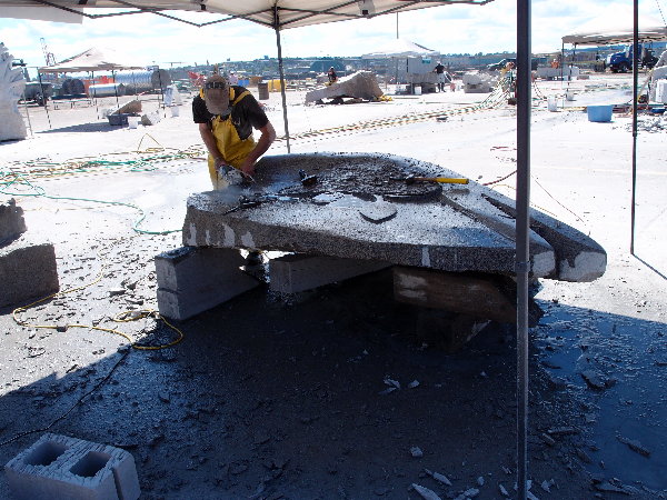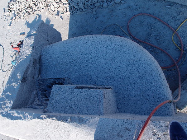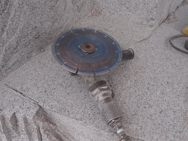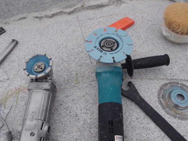 私のミスで、角落としのときのカッティング幅を広く取りすぎたために、あちこちえぐれてしまいましたが、なんとかカップダイヤで削って修正が可能でした。