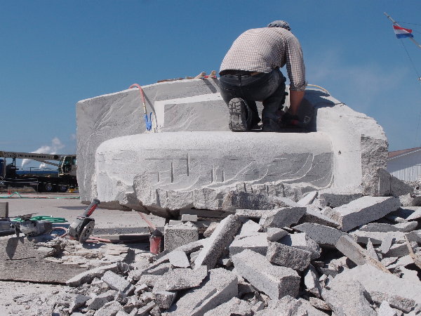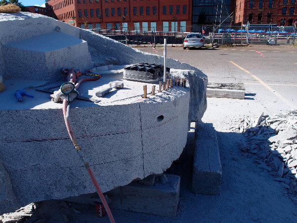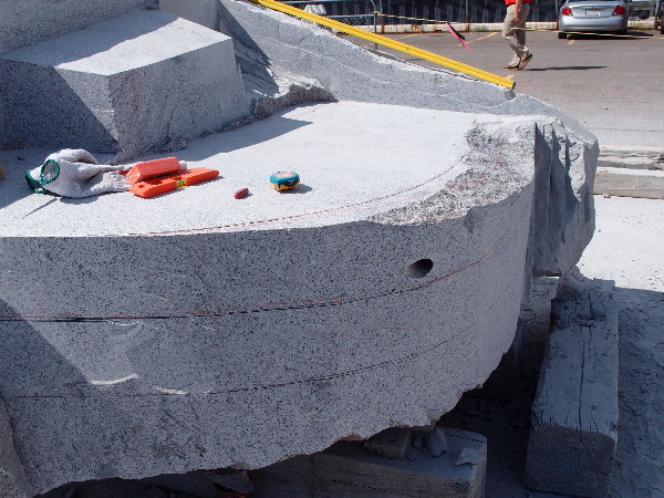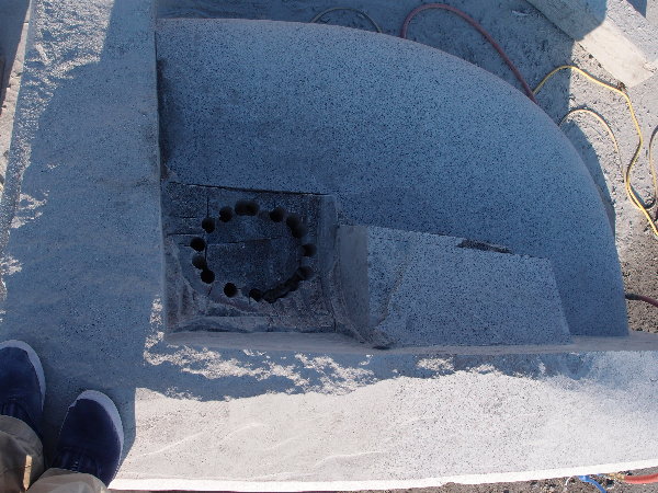 この石には石切り場の作業で空けられた削岩機の穴が上部に通っています。