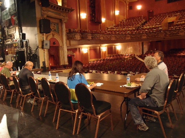 ☆今日のランチはシアターだというので、劇場にレストランがあるのだと思っていたら、なんと案内されたのは舞台の上でした。