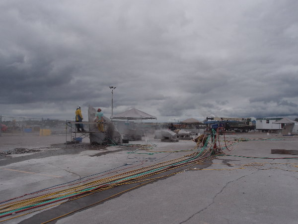 ☆と、そこへ霧の中からペリコプターが現れ、着陸と同時にもの凄い爆風で色んなものが飛んできて、作業テントも吹き飛ばされました。