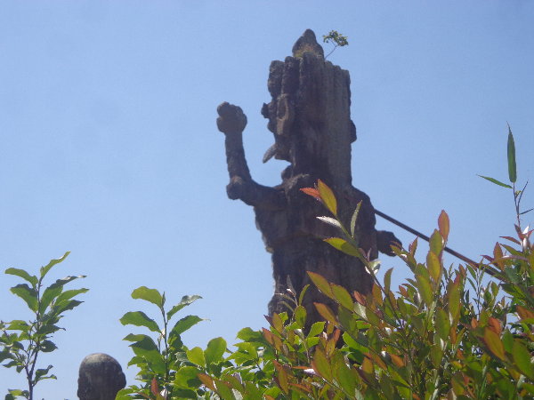高鍋大師の清武石で組まれた巨大石像群は、岩岡翁の素人作業で行われているので、老朽化にともない取り付けられたパーツが相当数崩落しており、本体も傾斜しているものもあるのが現状です。