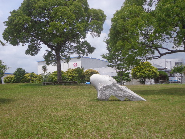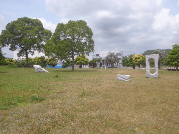 日向現代彫刻展・シンポジウム2006で併催した石彫教室で使った残りの石が新開公園に置かれたままだったので、その石が高鍋で使えないかと、確認に行きました。