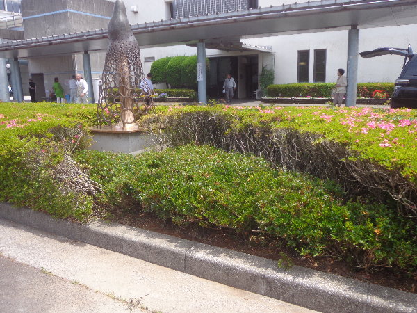 ☆もう一つの用件は、先日車の突っ込んだ日向市文化交流センターの長谷川氏の作品の現況を見るためでした。