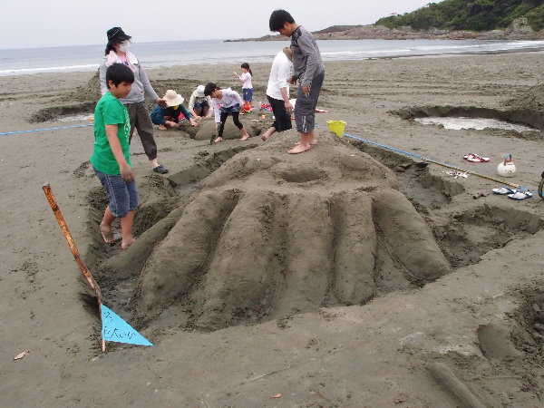 どのチームも大変仲良く、熱心に自然の中での造形作業を体ごと楽しんでいました。