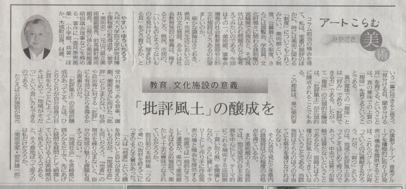 ☆今朝の宮崎日日新聞文化欄の「アートこらむ」は、親友の安井君の執筆でした。