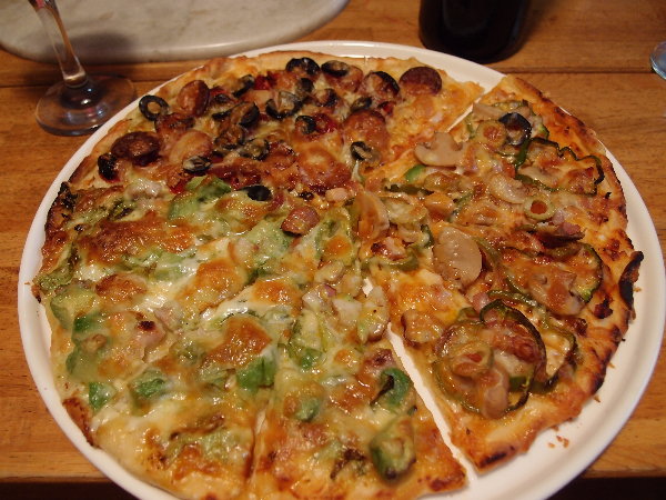 左から、アボカドシーザーサラダピザ、イタリアンバジルピザ、そして一般的なマッシュルームベーコンピザ。