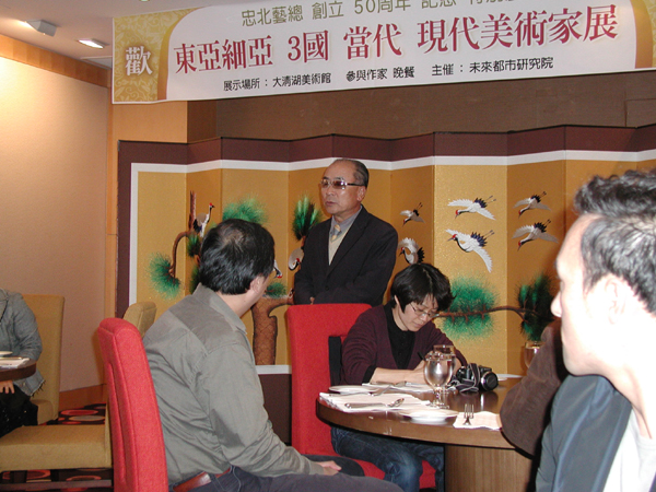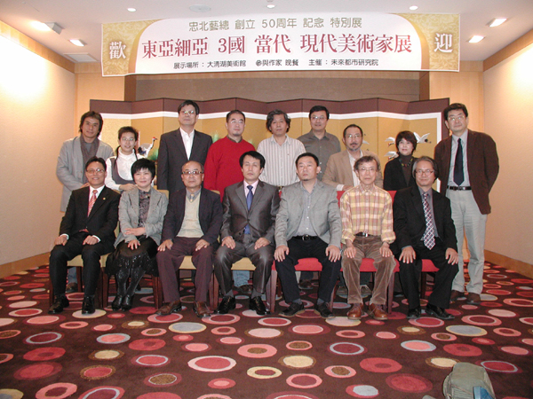右から3番目の方が作家です。中国の作家たちがとてもびっくりして一緒に写真を撮ってもらっていたところへ便乗しました。